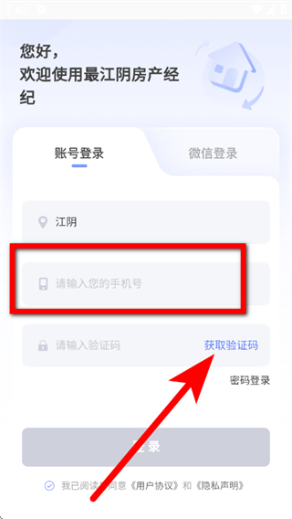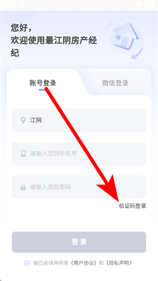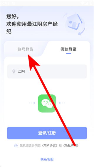 1、在有好房AJY欢迎页面,点击账号登录,进入账号登录模式。