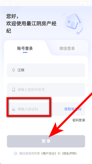 4、在输入框,输入验证码,勾选后,点击登录,完成账号登录。