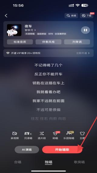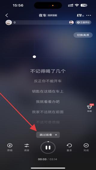 4、演唱过程可点击跳过前奏,快速进入演唱阶段。
