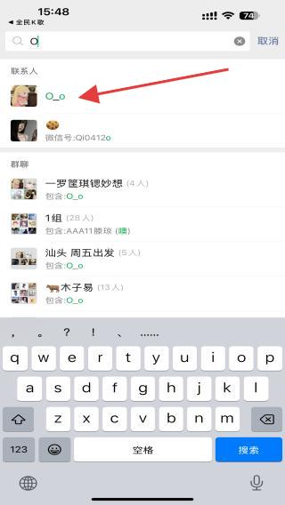 4、搜索结果出来后,点击目标人物,点击后即可开始分享。