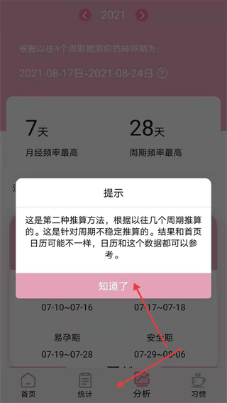 1、根据过往姨妈周期推算排卵期、安全期,月经期。