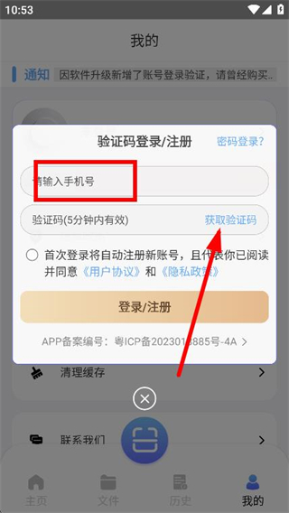 3、在弹窗中,填写手机号码,点击获取验证码。