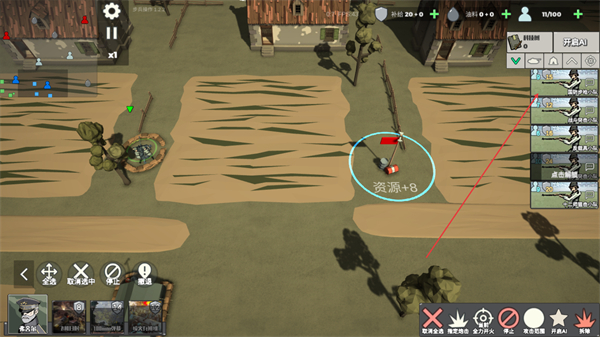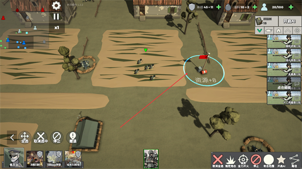 2、在战场中占领资源点获取资源+8,积累资源用于部署部队。