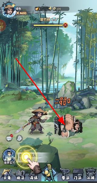 2、进入游戏场景后,角色会挂机自动的对敌方目标发起攻击,累积当前关卡的战斗奖励资源。