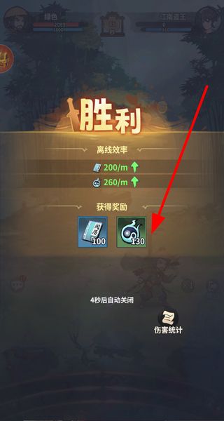 4、成功击败敌方目标后会显示胜利,自动获取对应的奖励道具,等待界面关闭即可结束本次关卡挑战。