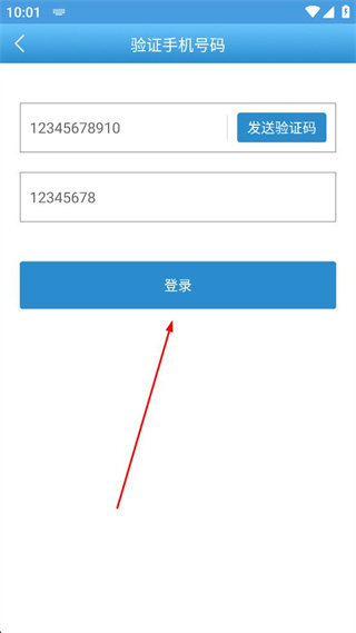 4、在输入验证码的框中填写收到的验证码,点击登录按钮完成登录操作。