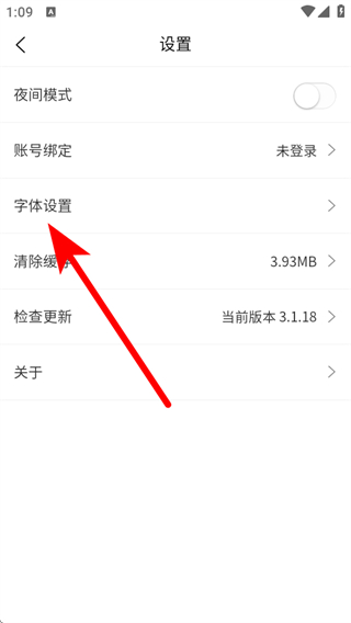 3、在设置的页面,点击字体设置的选项,弹出字号选择框。