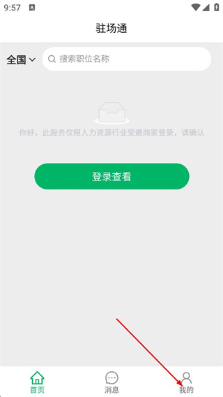 1、在驻场通首页,点击底部的我的,进入个人中心页面。