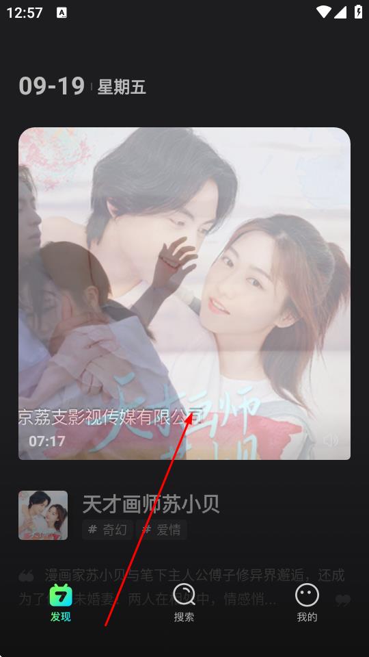 4、返回发现页面,选择一部想看的短剧,如天才画师苏小贝,点击进入播放。