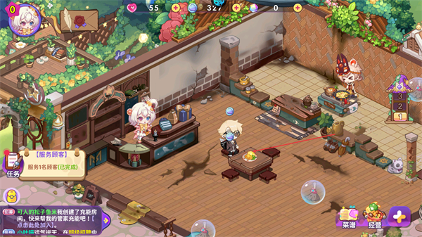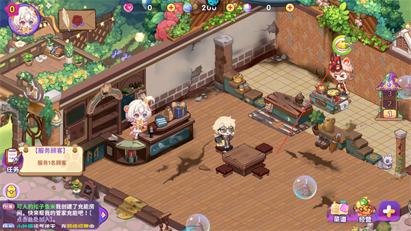 2、多元融合的经营玩法,涵盖从食材甄选、创意烹饪到餐厅装修、员工管理的全流程餐馆经营,同时融入轻度战斗与趣味小游戏,打破传统美食经营的单一模式玩法丰富度拉满。