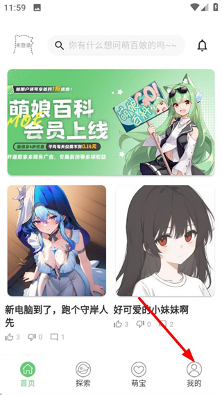 1、进入萌娘百科后,点击底部的我的选项,可进入个人中心页面。