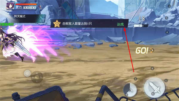 3、完成关卡目标后,界面会显示达成提示,此时点击GO可进入后续战斗流程。