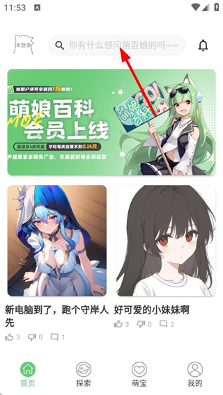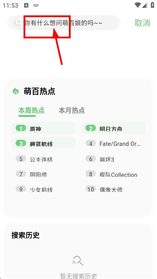 1、进入萌娘百科后,点击顶部的搜索框,可进入搜索页面。
