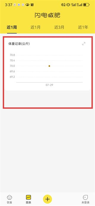 2、切换到“图表”页面,能查看近1周/1月等周期的体重变化曲线,直观了解减肥进度。