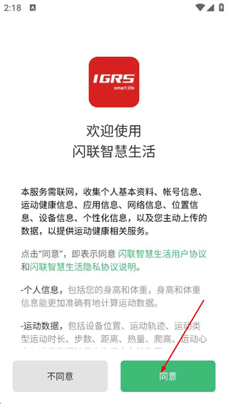 1、在闪联智慧生活欢迎页,点击同意,进入登录页面。