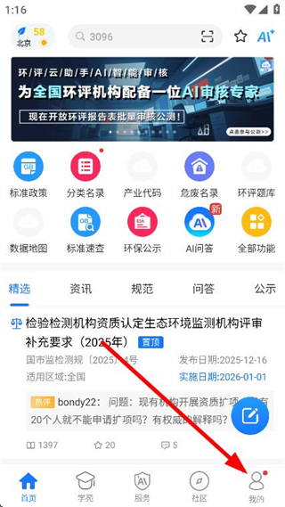 1、打开环评云助手,点击页面底部我的选项。