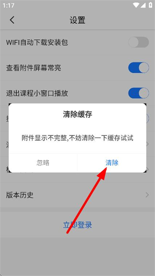 3、在设置页面中,找到并点击清除缓存选项。