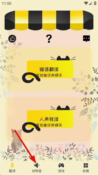 2、进入主页面后,点击底部导航栏中间的动物音选项。