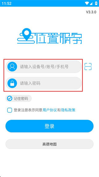 2、在登录页面的对应框中输入设备号或账号手机号,再填写对应的登录密码。