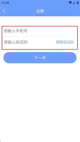 4、填写收到的验证码后,点击界面中的下一步按钮,继续完成注册流程。