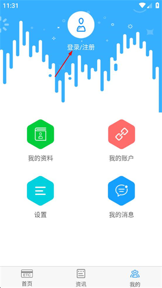 3、在个人中心页面找到登录注册选项,点击该选项,进入八桂行卡的登录界面。