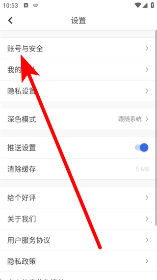 3、在设置页面,点击账号与安全,进入对应的页面。