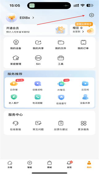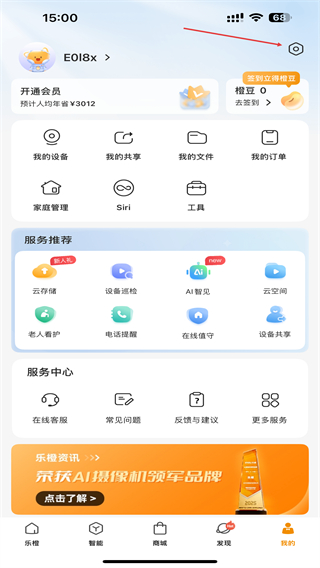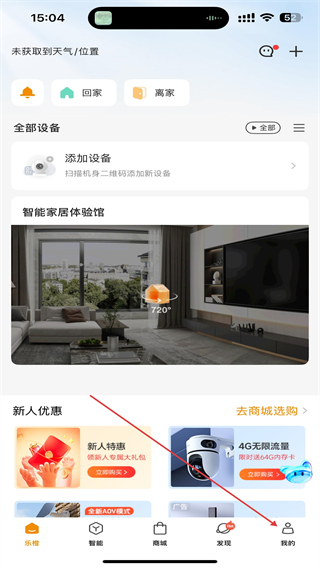 1、启动乐橙监控的APP,在首页右下角我的图标。