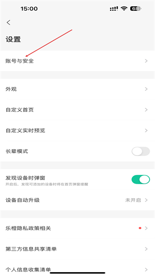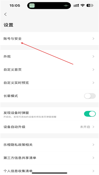 3、在设置页面里,点击账号与安全选项,进入账号与安全的操作页面。