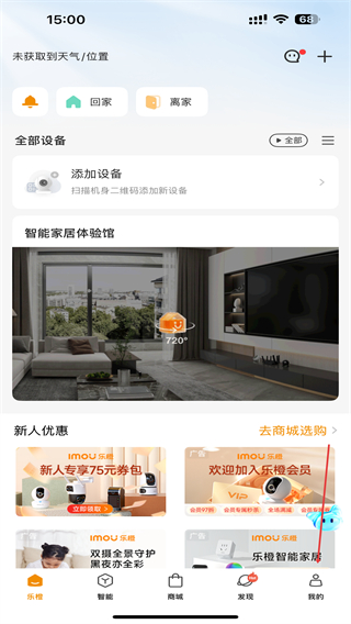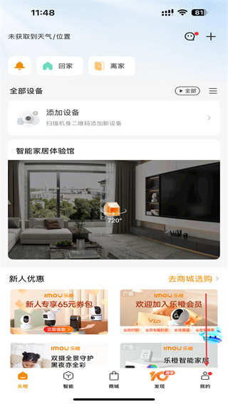 1、打开乐橙APP,点击添加设备选项。