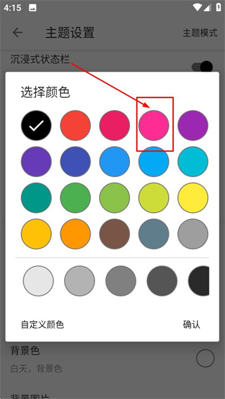 3、在主题设置页面,点击强调色对应的选项,可打开颜色选择弹窗。