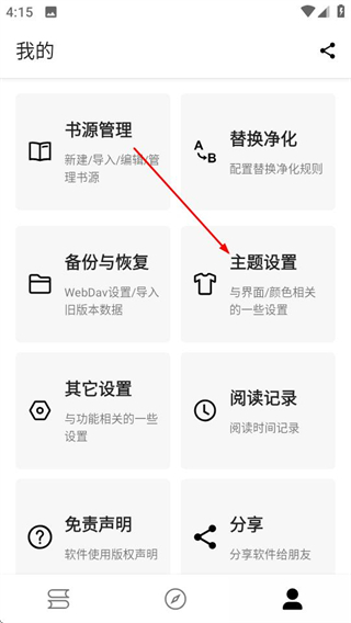 2、在个人中心页面,点击主题设置选项,可进入主题设置页面。