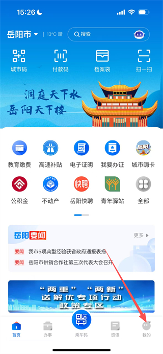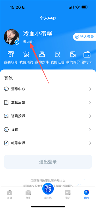 1、进入岳办岳好后,点击底部的我的选项,可进入个人中心页面。