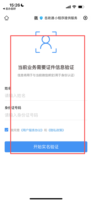 4、在实名验证页面,填写信息并勾选协议后,点击开始实名验证按钮即可完成实名认证。