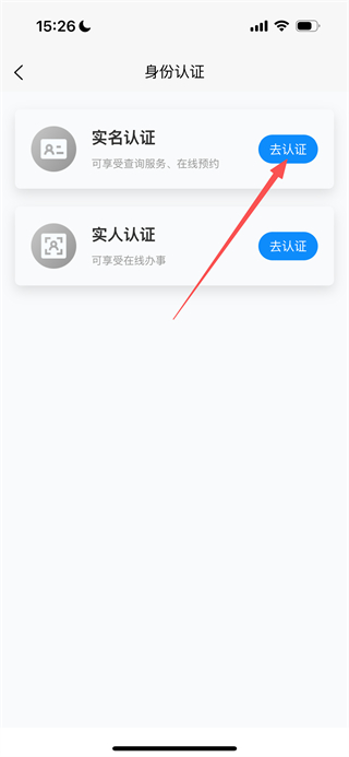 3、在身份认证页面,点击实名认证旁的去认证按钮,可进入实名验证页面。