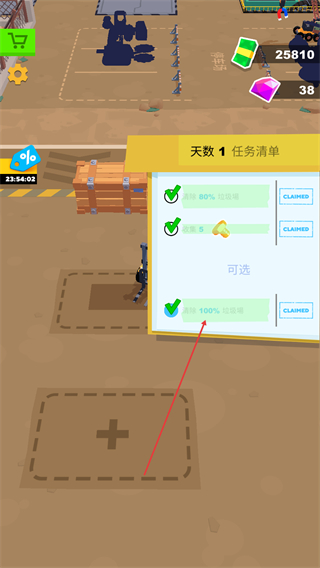4、查看天数1任务清单,确认已完成的任务,推进垃圾场运营进度。