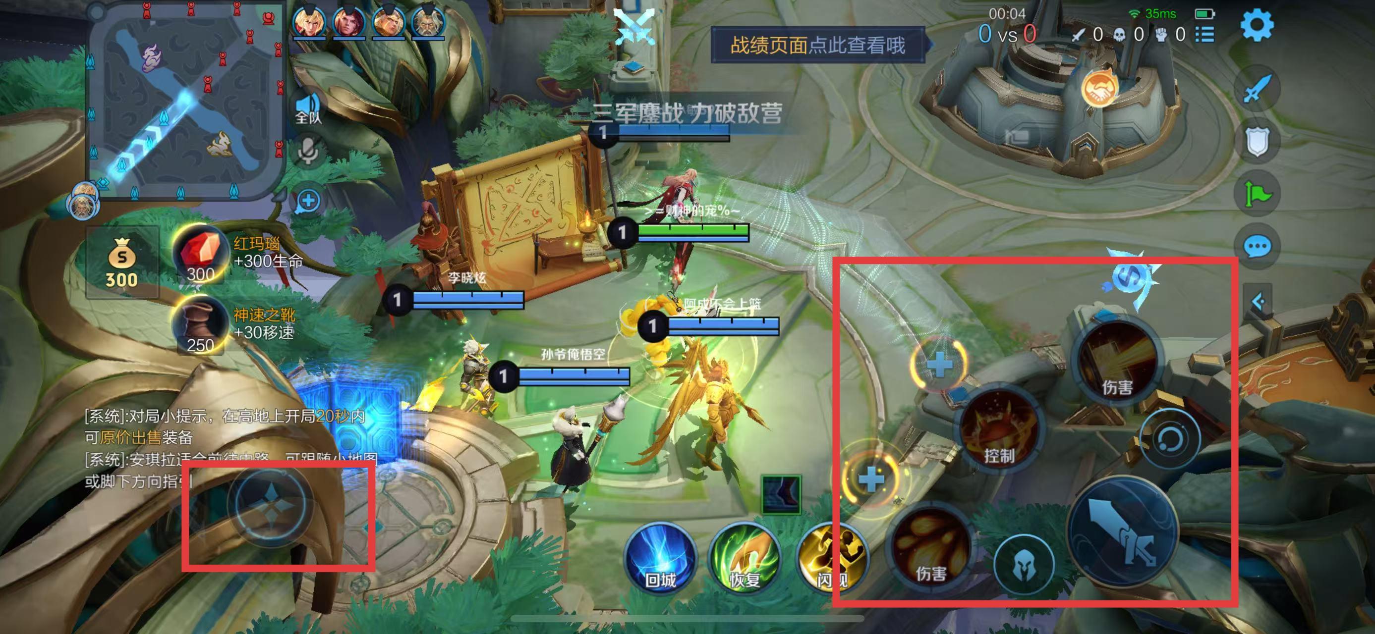 3、进入游戏对局后,通过屏幕左下方的虚拟摇杆控制英雄移动,利用右下方的技能按钮释放技能来攻击敌人、清理兵线,进而推掉敌方防御塔和水晶获取胜利。