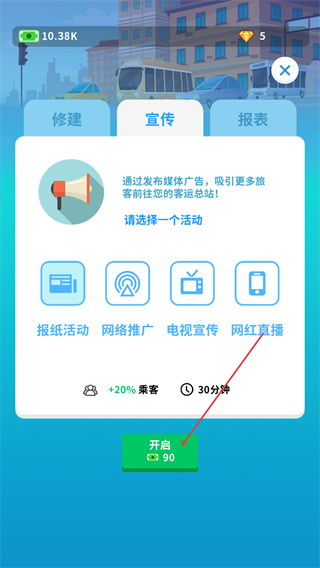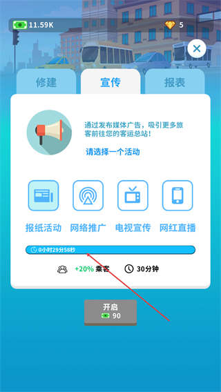 2、在宣传界面选报纸活动,消耗资源点击开启,触发宣传效果。