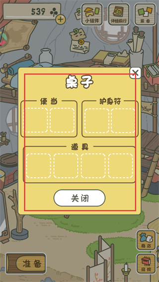 2、在小屋界面点击右下角的商店,可购买便当、护身符等道具。