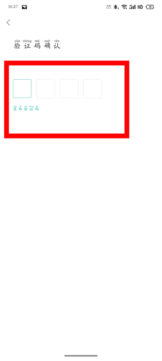 3、在验证码确认页面,将收到的验证码依次填入对应输入框,完成验证码验证。