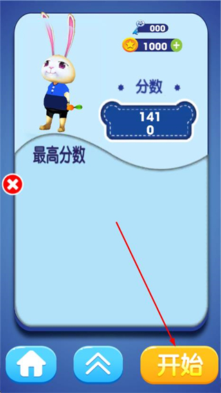 4、在结算界面点击开始按钮,可重新进入关卡挑战更高分数。
