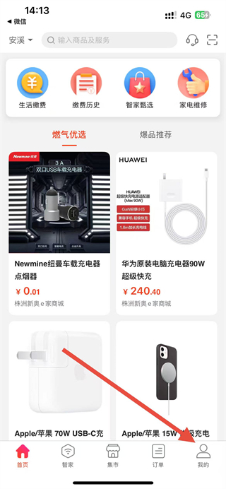 1、在e城e家app首页点击我的选项,进入个人页面。
