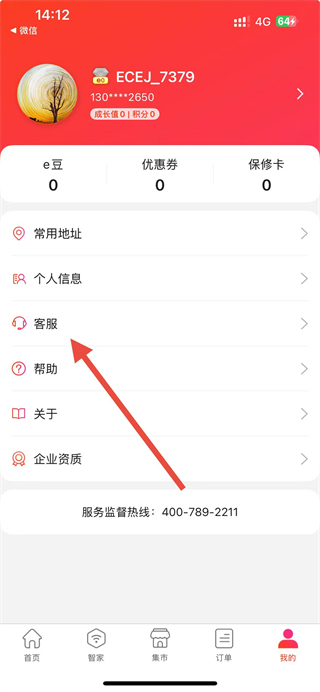 1、进入e城e家app主界面后,点击界面底部我的选项,进入我的个人页面。