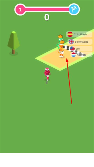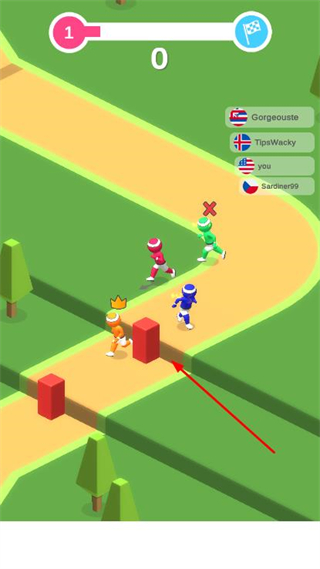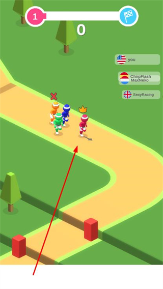 2、通过滑动屏幕控制角色移动,在赛道上与其他玩家竞速,同时可利用走位干扰对手。