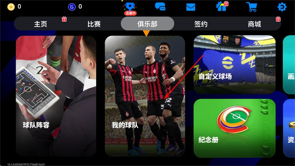 1、在游戏主界面,点击顶部导航栏的俱乐部选项,进入俱乐部页面。