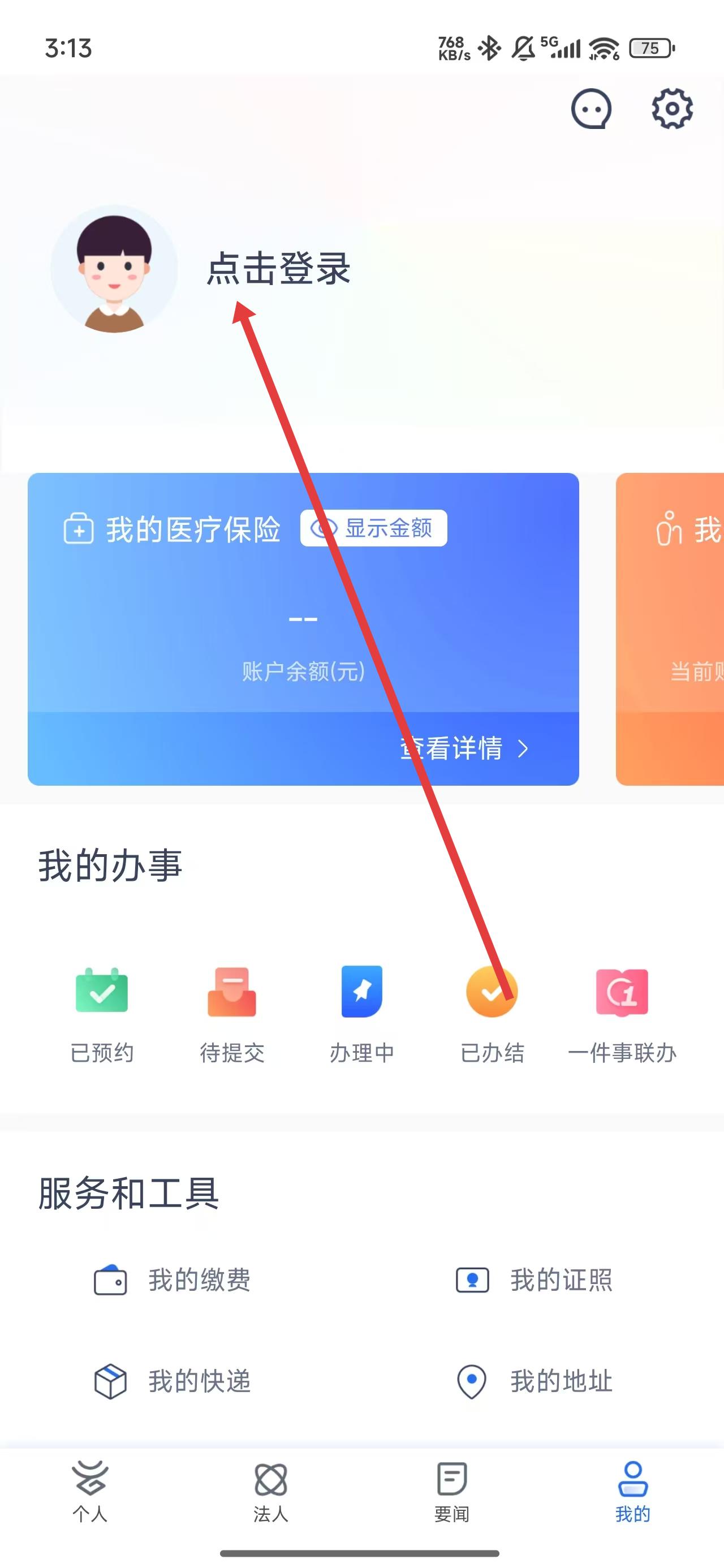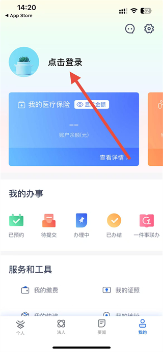 2、在进入到我的主页中,可以通过点击登录按钮,准备进行登录操作。