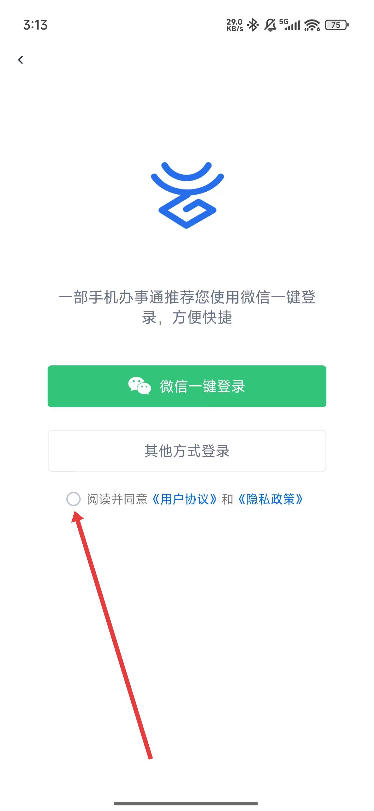 3、在跳转到登录页面后,需要先点击勾选下方阅读并同意按钮。