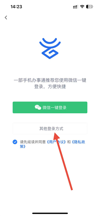 2、在当前界面,勾选同意用户协议,点击其他登录方式,切换至个人登录页面。