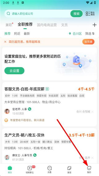 1、进入汇博招聘app后,找到底部我的选项并点击,进入个人页面。