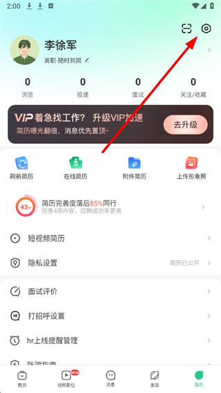 2、在个人页面中,找到右上角的设置图标并点击,进入系统设置对应的功能页面。