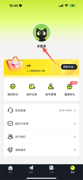 2、随后我们在我的页面,点击未登录区域,触发登录弹窗。